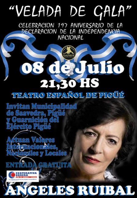 Según le indicaron a FM de la Ciudad el lunes de la próxima semana, a las 21.30 horas, tendrá lugar un festival en el Teatro Español de Pigüé que contará con la presentación de Ángeles Ruibal.