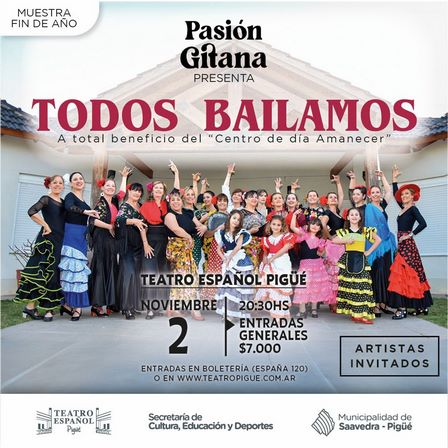 Este espectáculo anunciado para el sábado 2 de noviembre, a las 20.30 horas, en la sala de calle España 120 de Pigüé, ofrecerá un abanico de expresiones artísticas, incluyendo danzas españolas, flamenco, danza clásica, danza folclórica, milonga y poemas, por un valor de 7.000 pesos la entrada.