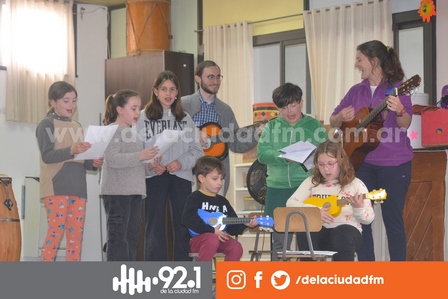 Integrantes de ARTIMUSA, por la Semana de las Artes, interpretaron varias canciones frente a los pequeños, docentes y directivos del Jardín de Infantes Número 901 de Pigüé.