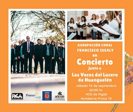 El Encuentro Coral se hará con ‘Las Voces del Lucero’, de Huanguelén, en el Salón del Honorable Concejo Deliberante de Pigüé.