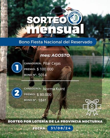El día sábado 31 de agosto se realizó el sorteo mensual del bono correspondiente a la Fiesta Nacional del Reservado.