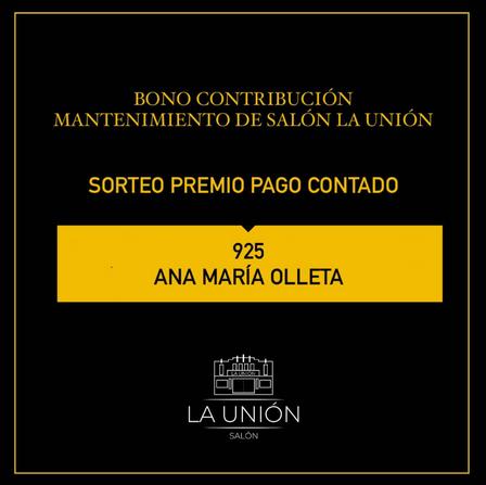 El Bono Contribución Pro Mantenimiento del Salón La Unión tuvo como ganadora a Ana María Olleta.