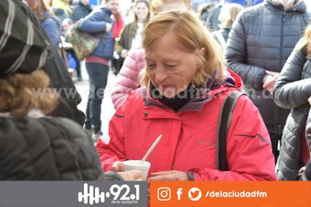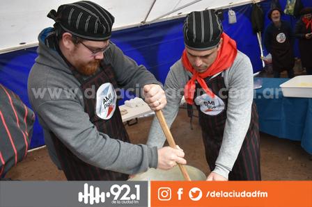 En la localidad de Espartillar los visitantes que acuden a la Fiesta de la Trufa Negra Argentina, luego de realizar una larga fila, reciben las porciones de este menú aveyrones.