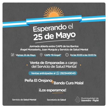 En calle Magallanes 161 de la ciudad de Pigüé habrá música en vivo con la Banda Militar Cura Malal, se presentará la Peña Folclórica El Orejano, y habrá venta de empanadas a cargo de integrantes del Área de Salud Mental.