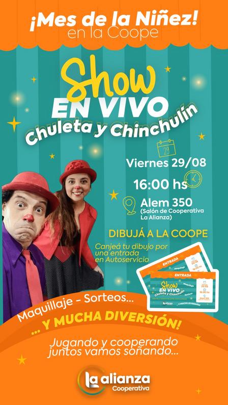 Esa tarde habrá un show en vivo con Chuleta y Chinchulín, maquillaje, sorteos, y juegos.