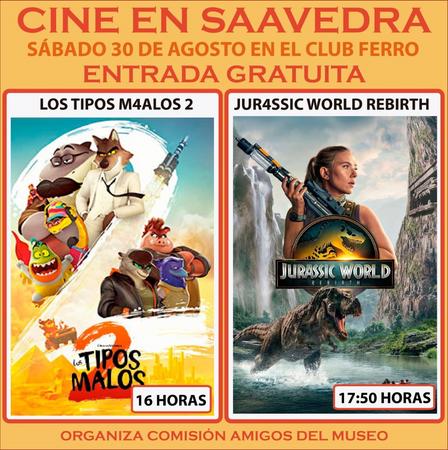 Las propuestas son, a las 16.00 horas con Los Tipos Malos 2, y a las 17.50 horas Jurassic World Rebirth.