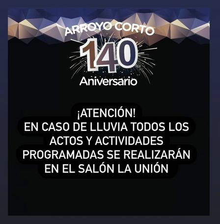 Para hoy, lunes, a las 10.30 horas, está anunciado el acto por los 140 años de la fundación de Arroyo Corto.