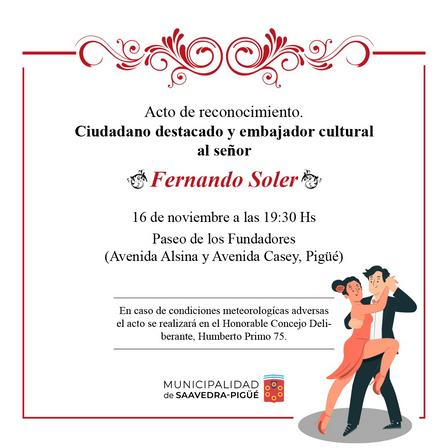 Se realizó el acto de reconocimiento al artista local Fernando Soler