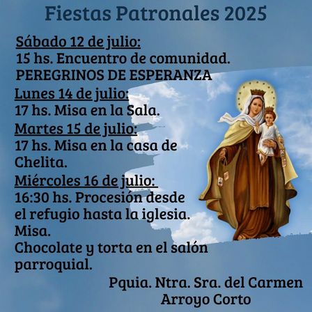 La comunidad religiosa de Arroyo Corto celebrará las Fiestas Patronales 2025 de Nuestra Señora del Carmen.