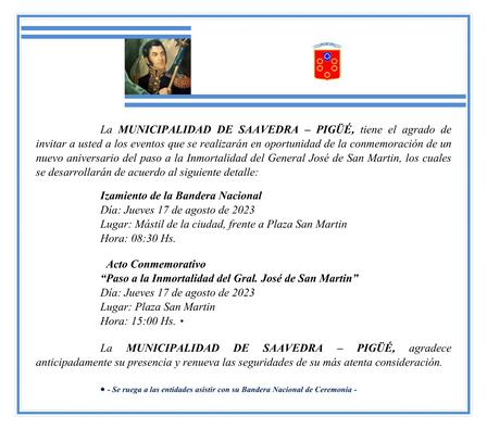 Se hará el jueves el izamiento de la bandera argentina en conmemoración del General José de San Martín