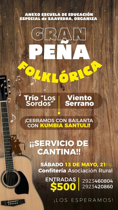 En FM de la Ciudad la integrante del Anexo de la Escuela Especial de Saavedra comentó “nuestra gran peña folclórica es ahora, el sábado 13, a partir de las 21.30 horas”.