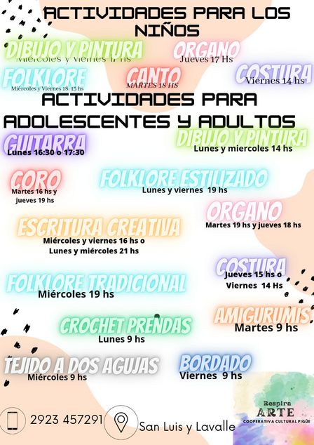 Estas actividades, impulsadas por la Secretaría de Cultura Municipal, se harán en el Centro de Jubilados de calle Belgrano 681 de Pigüé.