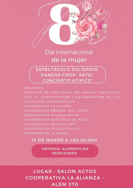 Mabel Bras destacó “este viernes, en el Salón de La Alianza, en la segunda parte del espectáculo va a actuar el grupo Atípico”.