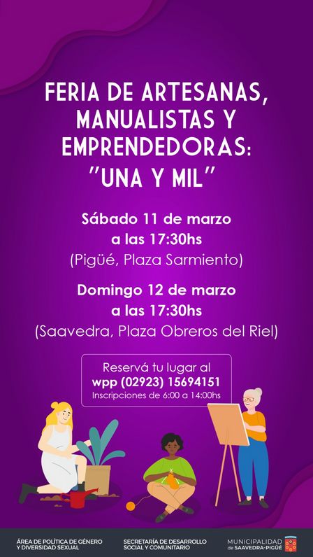 Bajo el título 'Una y mil' se llevarán a cabo estas presentaciones, el sábado 11 de marzo, a las 17.30 horas, en la Plaza Sarmiento de Pigüé, y el domingo 12 de marzo, desde las 17.30 horas, en la Plaza Obreros del Riel de Saavedra.