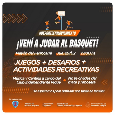 A las 19.00 horas, el jueves, en el Playón del Ferrocarril de Pigüé, habrá juegos, desafíos y actividades recreativas, con invitación a toda la comunidad.