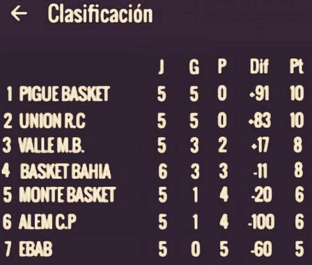 Pigüé Basket registra 11 unidades seguido de Valle Medio Basket con 9, Monte y Basket Bahía con 8 cada uno, y con 7 cierran tanto la EBAB como Alem.