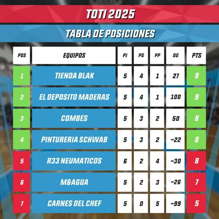 Hubo cambios en la tabla de posiciones del Torneo Toti 2025 de Básquet