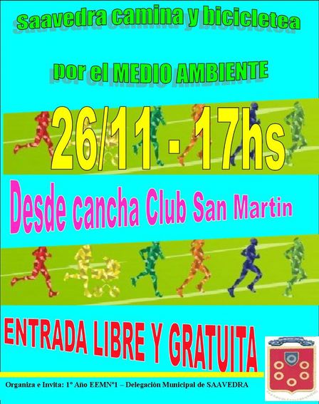 ‘Saavedra camina y bicicletea por el medio ambiente’ dice la invitación de este evento que tendrá lugar el lunes 26 de noviembre, a partir de las 17.00 horas, con inscripción gratuita, partiendo desde el Campo de Deportes del Club San Martín.