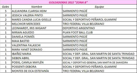 Alejandra Heim encabeza la tabla de goleadoras en la Zona B del Fútbol Femenino