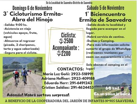 Para este sábado se hará el Bici Encuentro en la Ermita de Saavedra, mientras que, al día siguiente tendrá lugar el cicloturismo desde el predio religioso con una recorrida por el Abra del Hinojo.