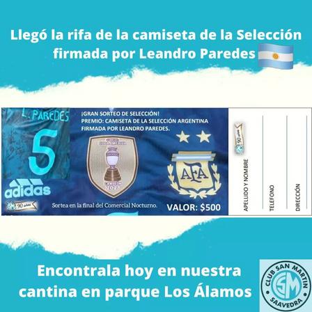 Los integrantes de la Comisión Directiva de San Martín tienen números disponibles con el premio final de la Camiseta de la Selección Argentina firmada por Leandro Paredes.