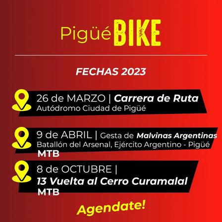 Para el 26 de marzo anunciaron la realización de una carrera de ruta en el Autódromo Ciudad de Pigüé y para el 9 de abril la realización de la competencia de Mountain Bike llamada 'Gesta de Malvinas Argentinas' con epicentro en la Guarnición Militar local.