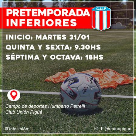 Club Unión Pigüé, en el Campo de Deportes Humberto Petrelli, a las 18.00 horas, tendrá el primer entrenamiento del año con Séptima y Octava División de Fútbol.
