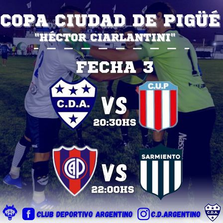 20.30 horas - Club Deportivo Argentino vs. Club Unión Pigüé