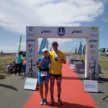Ambos pigüenses estuvieron compitiendo en el Balneario El Cóndor, haciendo un triatlón de la distancia Half, con 1.900 metros de nado (que no pudieron completarse ya que los organizadores lo suspendieron por las condiciones del clima), 90 kilómetros en bicicleta y 21 kilómetros corriendo.