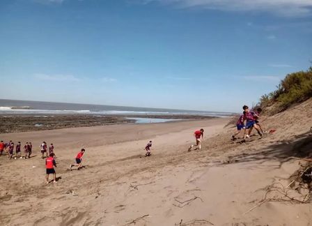 El equipo de fútbol de Pigüé está desarrollando estos entrenamientos especiales en la localidad balnearia.