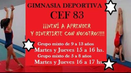 En el Centro de Educación Física Número 83 de la ciudad están anotando para los grupos mixtos, de 9 a 13 años, los días martes y jueves de 15.00 a 16.00 horas.