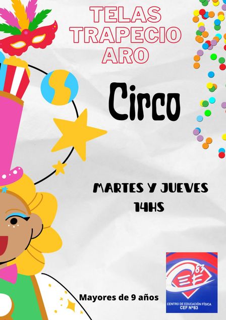 Los días martes y jueves, desde las 14.00 horas, tienen lugar las clases de circo con propuestas de aros, telas, y trapecio para mayores de 9 años de edad.
