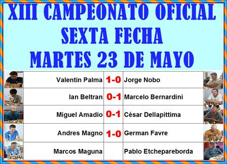 Se jugaron varias partidas de la 6ª Fecha del Campeonato Oficial de Ajedrez