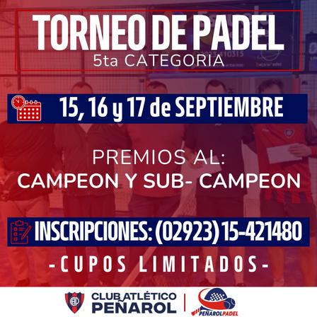 Un torneo de padel de 5ª División se hará en Club Peñarol