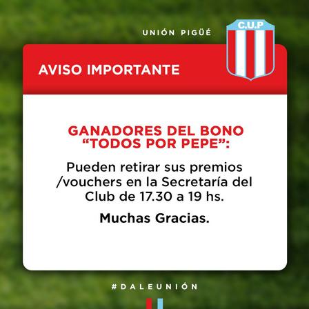 Las personas favorecidas pueden retirar sus premios / vouchers en la Secretaría de la Sede Social.