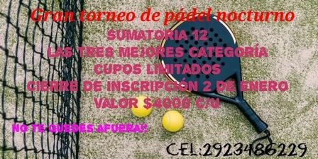 En el Complejo Deportivo Las Sierras Pádel inscriben a través del 2923 48 62 29.