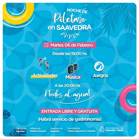 Luego de las 19.00 horas, este martes 6 de febrero de 2024, con ingreso gratuito, en el natatorio público de la localidad, habrá juegos, música y más actividades.