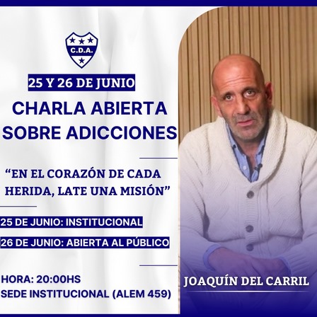 Joaquín Del Carril estará disertando ante los presentes sobre adicciones