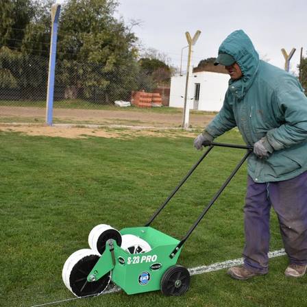 En el predio Walter Alric quienes tienen a su cargo el mantenimiento cuentan con una nueva máquina que se utiliza para demarcar las líneas del campo de juego.