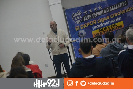 En el Salón Fundadores del Club Deportivo Argentino de Pigüé Joaquín Del Carril da una charla sobre adicciones