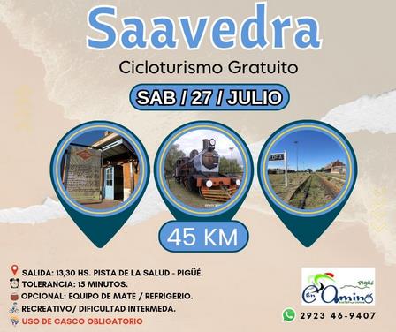 Este sábado, luego de las 13.30 horas, desde la Pista de la Salud, estarán partiendo con destino a la localidad de Saavedra, para llevar a cabo una nueva recorrida