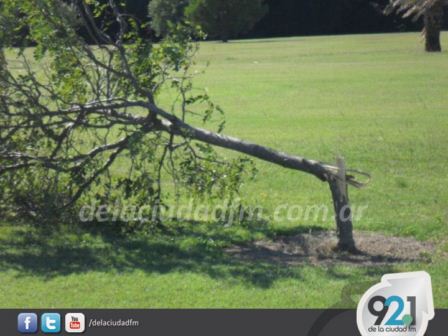 Según le indicaron a FM de la Ciudad, en el lugar se quebraron varias especies jóvenes, y, a su vez, árboles de varios años de existencia sufrieron su caída luego del ventarrón.
