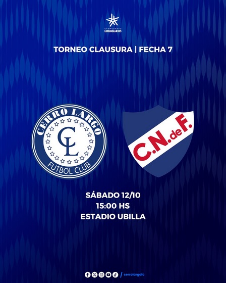 Por la séptima fecha del Torneo Clausura de Primera División, este sábado, 12 de octubre, desde las 15.00 horas, saldrá a escena Cerro Largo Fútbol.