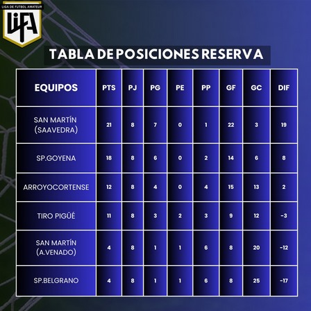 San Martín de Saavedra es el puntero del Torneo Clausura de Reserva en la LiFA
