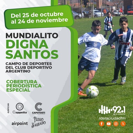 En la web, vía redes sociales, y por el 92.1 del dial estarán disponibles todas las novedades del Mundialito Digna Santos