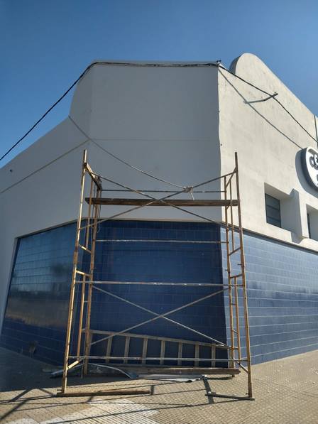 En la institución deportiva desarrollan una serie de labores de refacción y pintura de paredes del frente de su edificio.