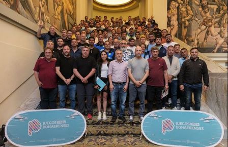 Jeremías Serrano de Cultura Municipal, Matías Arce de Adultos Mayores, y Damián Weisbeck de Deportes, fueron parte del encuentro con el funcionario bonaerense en el Hotel Provincial de Mar del Plata.