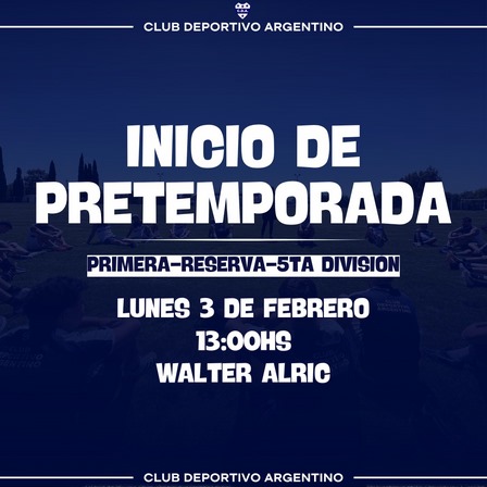 En el Campo de Deportes Walter Alric el Club Deportivo Argentino dará inicio con la pretemporada de fútbol mayor.