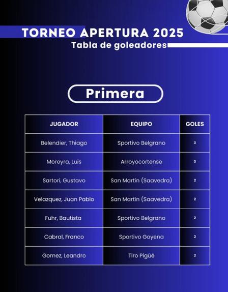 En el certamen de fútbol amateur la nómina de máximos anotadores es la siguiente: