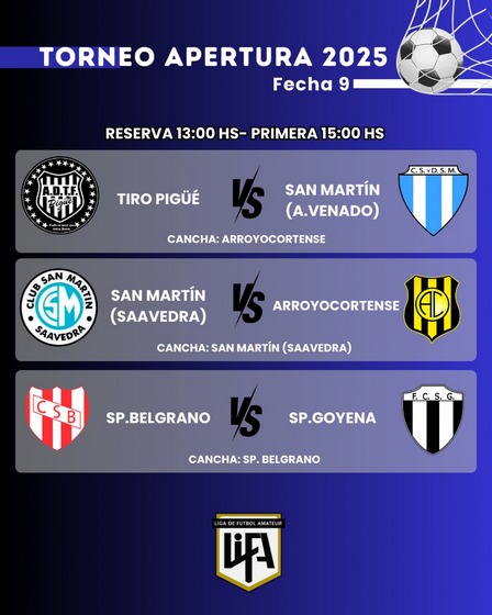 El Torneo Apertura de la Liga de Fútbol Amateur tendrá su 9° Fecha